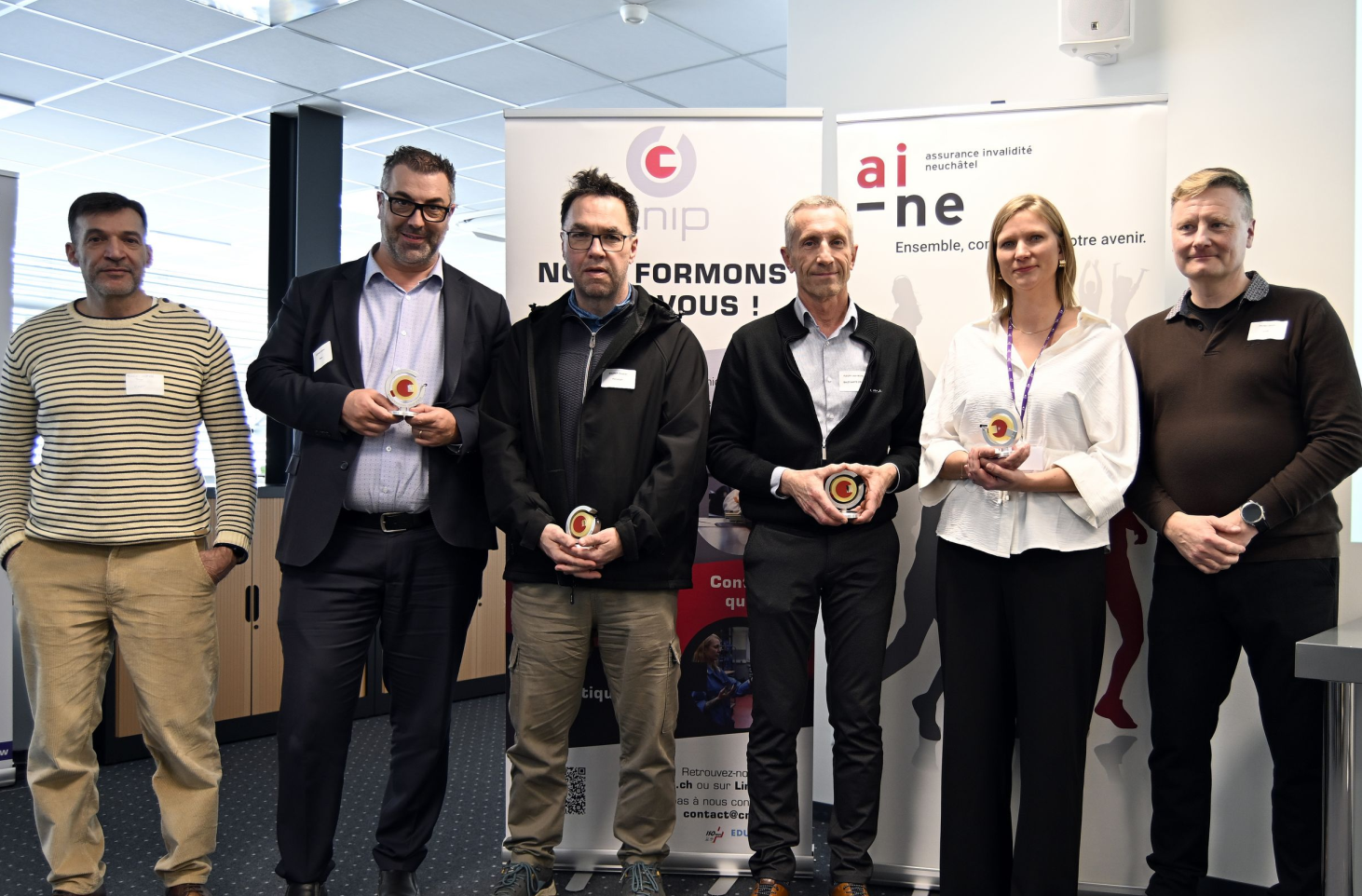 Le 1er avril dernier, lors d’une cérémonie organisée dans une entreprise du canton, le CNIP en collaboration avec l’OAI-NE et sous la présidence de Mme la conseillère d’Etat F. Nater, a remis le Label Intégration 2025 aux entreprises qui ont mis en place des stages en faveur des personnes en situation de réinsertion qui ont suivi une formation dans l’un de ses ateliers afin de consolider leurs compétences.